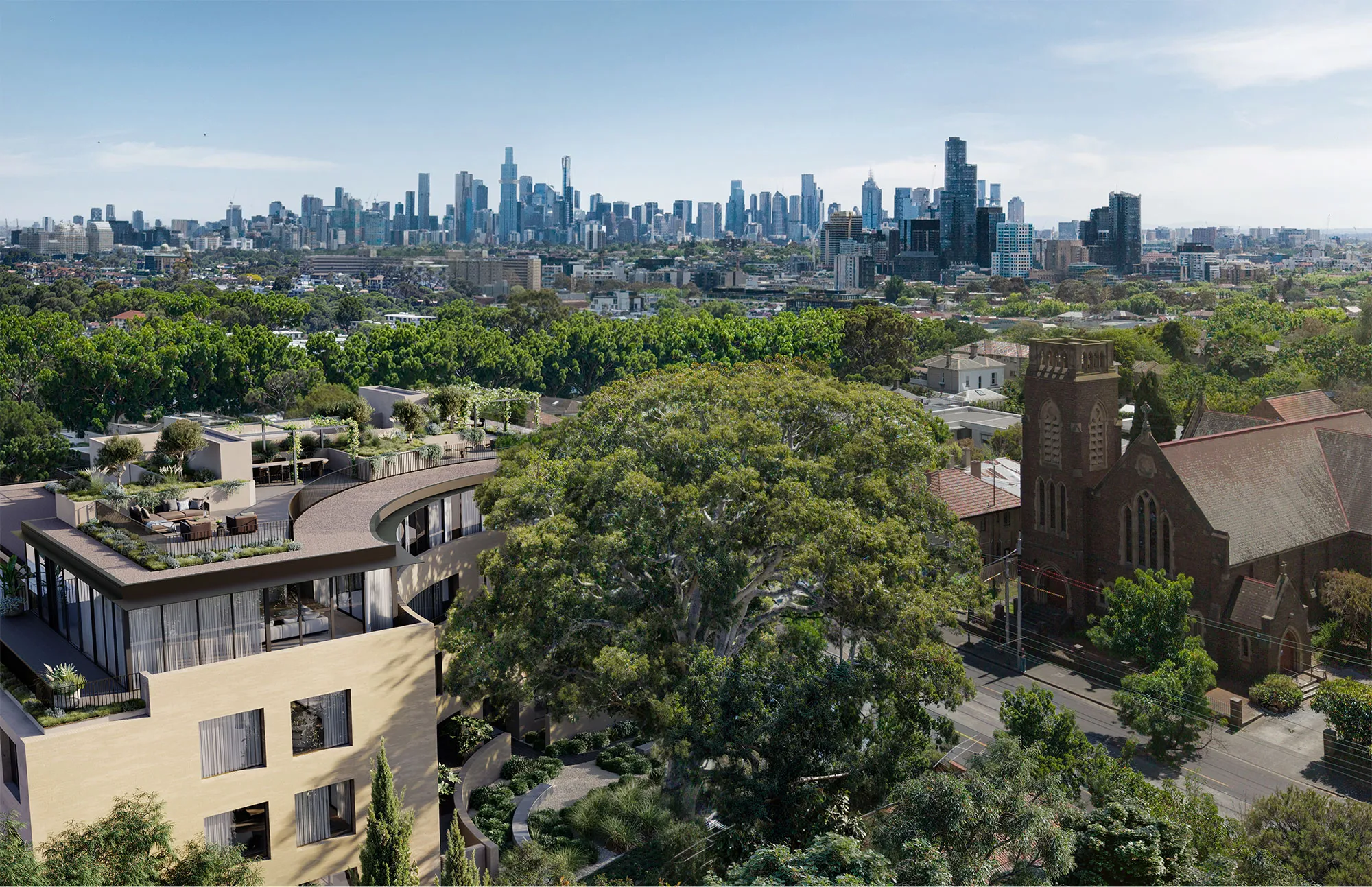 At Carr, we always do a deep dive into the context of the site and what makes it unique. We were very excited about the site’s large nationally heritage-listed tree, with its 15 metre-wide canopy and its position high on the hill. They influenced the building’s form and mass, designed to maximise apartments and establish outlooks.