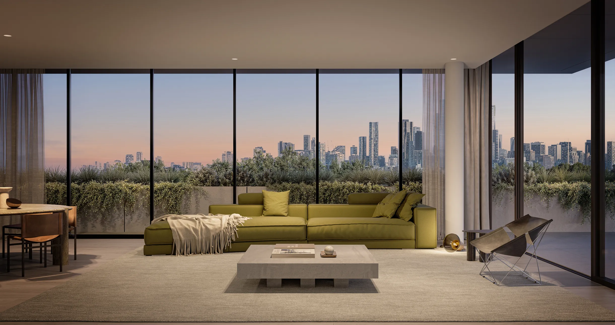 Many apartments look out to the large, heritage-listed tree, or embrace verdant vistas. Light and shadows dance as the dappled morning sun filter through the leafy canopies. On the upper levels, residences enjoy spectacular views of Melbourne. The windows are part of that system as they frame the views of not only the city, but also the surrounding treetops. Extensive rooftop terraces also offer views of the city and Port Phillip Bay.